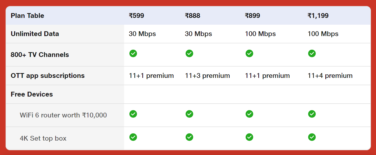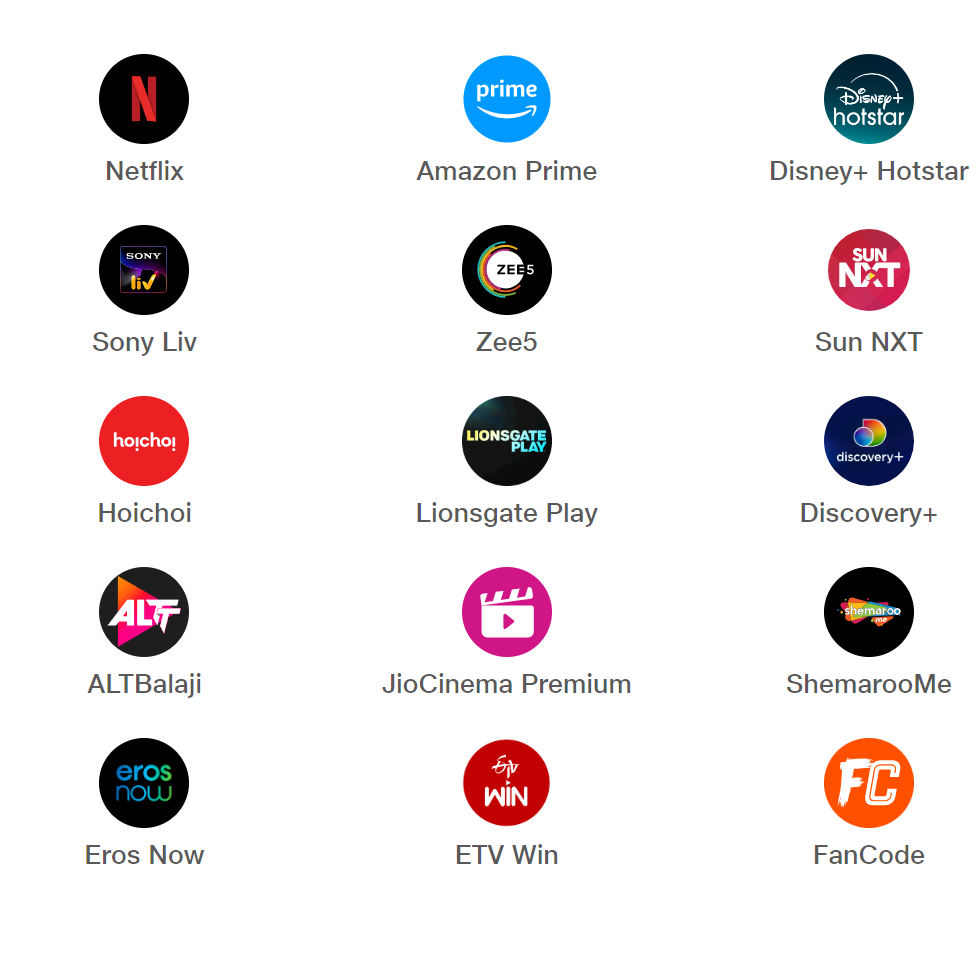 JioFiber offers extensive plans that include subscriptions to 15 premium OTT applications. Users must utilize a Jio Set-top Box to access these streaming services. Among the impressive selection of platforms, subscribers can enjoy Netflix, Amazon Prime Video, and Disney+ Hotstar, alongside regional favorites such as ZEE5 and SUNNXT. Other notable apps include SONYLIV, ALT BALAJI, and HOICHOI, providing a diverse array of entertainment options for every preference. Additional offerings consist of SHEMAROOME, LIONSGATE PLAY, and EROS NOW, ensuring a wealth of movies and series. For documentary lovers, DISCOVERY PLUS is included, while JIOCINEMA PREMIUM caters specifically to film enthusiasts. With ETV Win and FanCode rounding out the selection, JioFiber's plans deliver significant value, seamlessly merging internet connectivity with a rich variety of entertainment choices. Refer to plan specifics to discover which subscriptions are bundled with each offering.